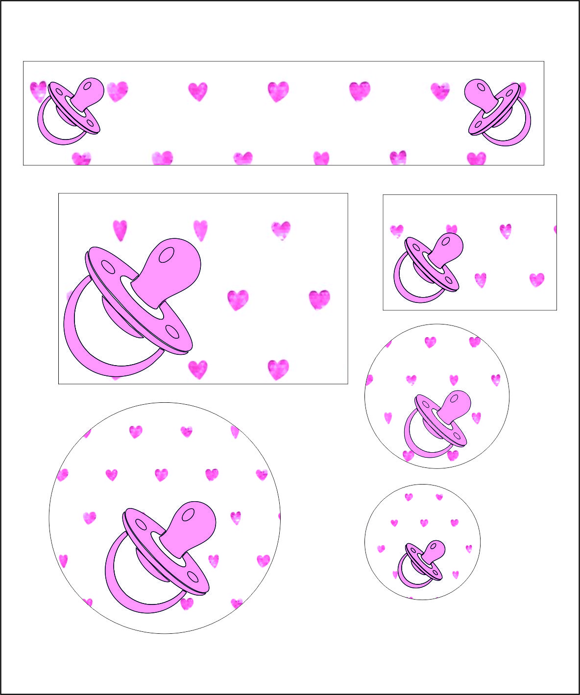 מדבקות לגן -מוצץ ורוד- 91 יח בגדלים שונים