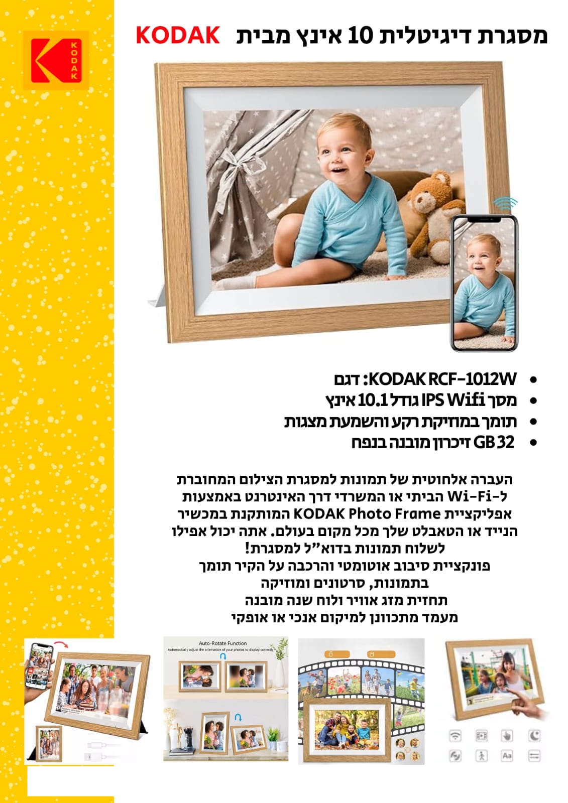 עמוד הביתמסגרות מיוחדותמסגרות דיגיטליות מסגרת דיגיטלית 10.1' צבע עץ+ פספרטו