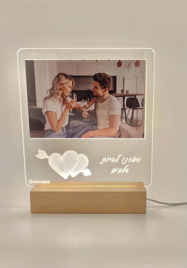 • מעמד תמונה עם כיתוב בנוי הכולל אור