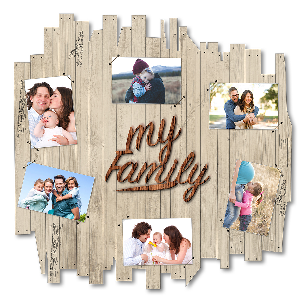 מסגרת מעוצבת 6 תמונות my family רקע חום בהיר